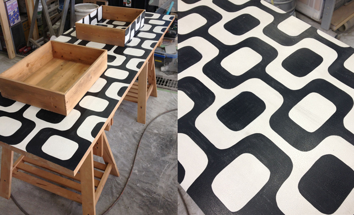 セルベーラ 什器天板面クラッキング塗装 商社の展示スペースに納品