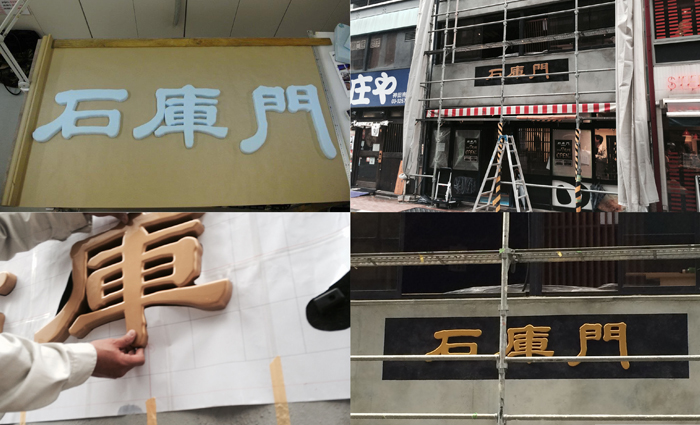 石庫門神田店 切り文字看板製作・塗装・取り付け